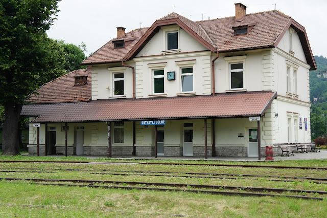 Czy warto tu coś zobaczyć poza krajobrazami ? Po przeczytaniu przewodnika zachęceni informacjami, odnaleźliśmy zabytkowy budynek stacji kolejowej z 1872r. Niestety, rzeczywistość nie była zachwycająca. Zwykły budyneczek, częściowo zajęty przez różne firmy usługowe. Na zdjęciu powyżej uwieczniłam tę ładniejszą stronę 😉