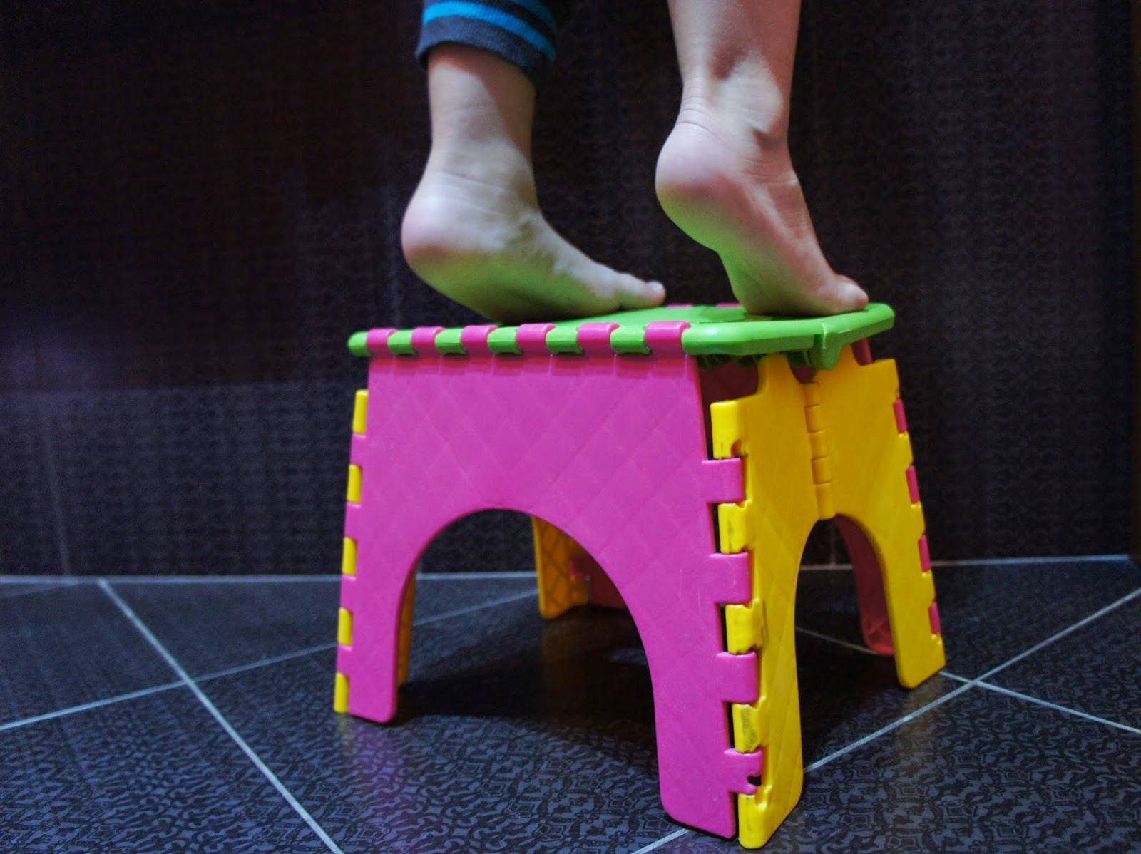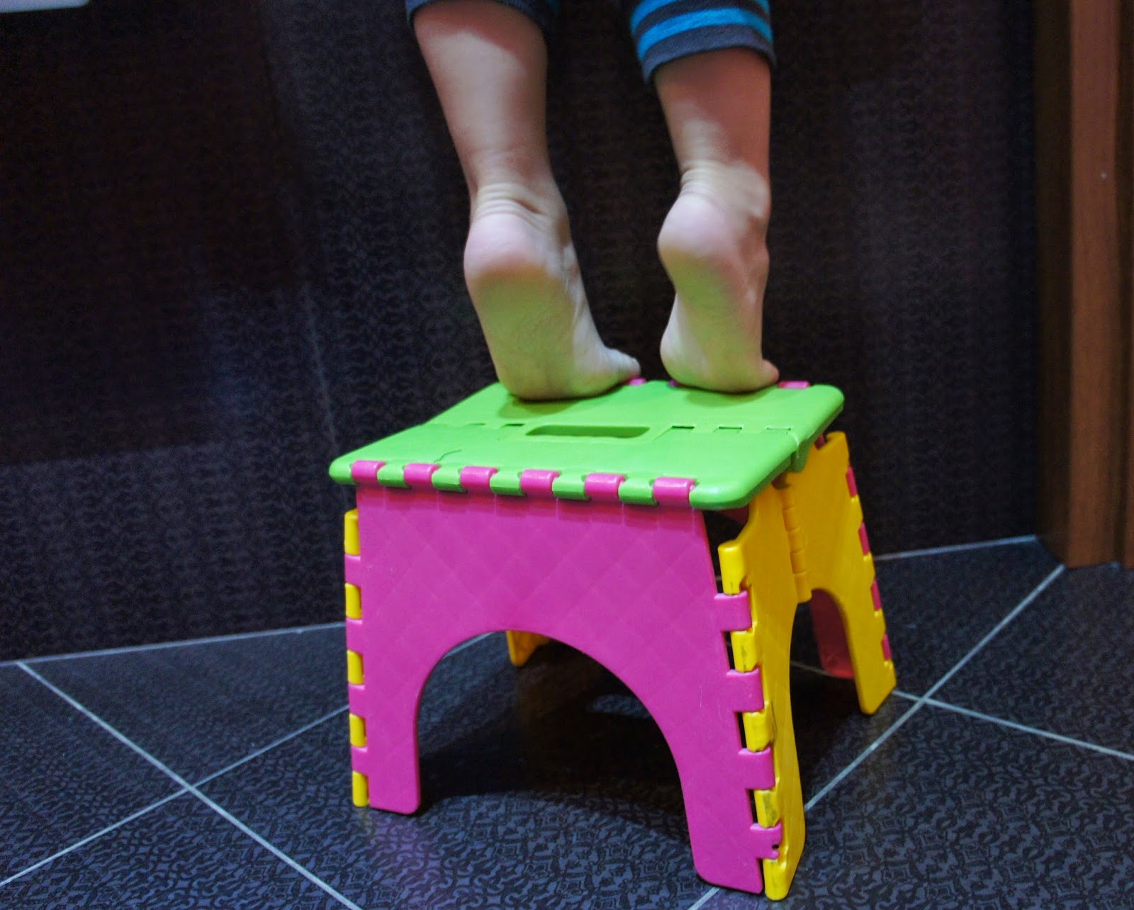 I jeszcze jedno- stołek ma po złożeniu wygodną rączke, więc Twoja pociecha może sama go nosić lub przestawiać. Nie podaję firmy produkujacej, bo to chyba jakiś chiński odpowiednik firmy-krzak. Znajdziesz podobne bez trudu.