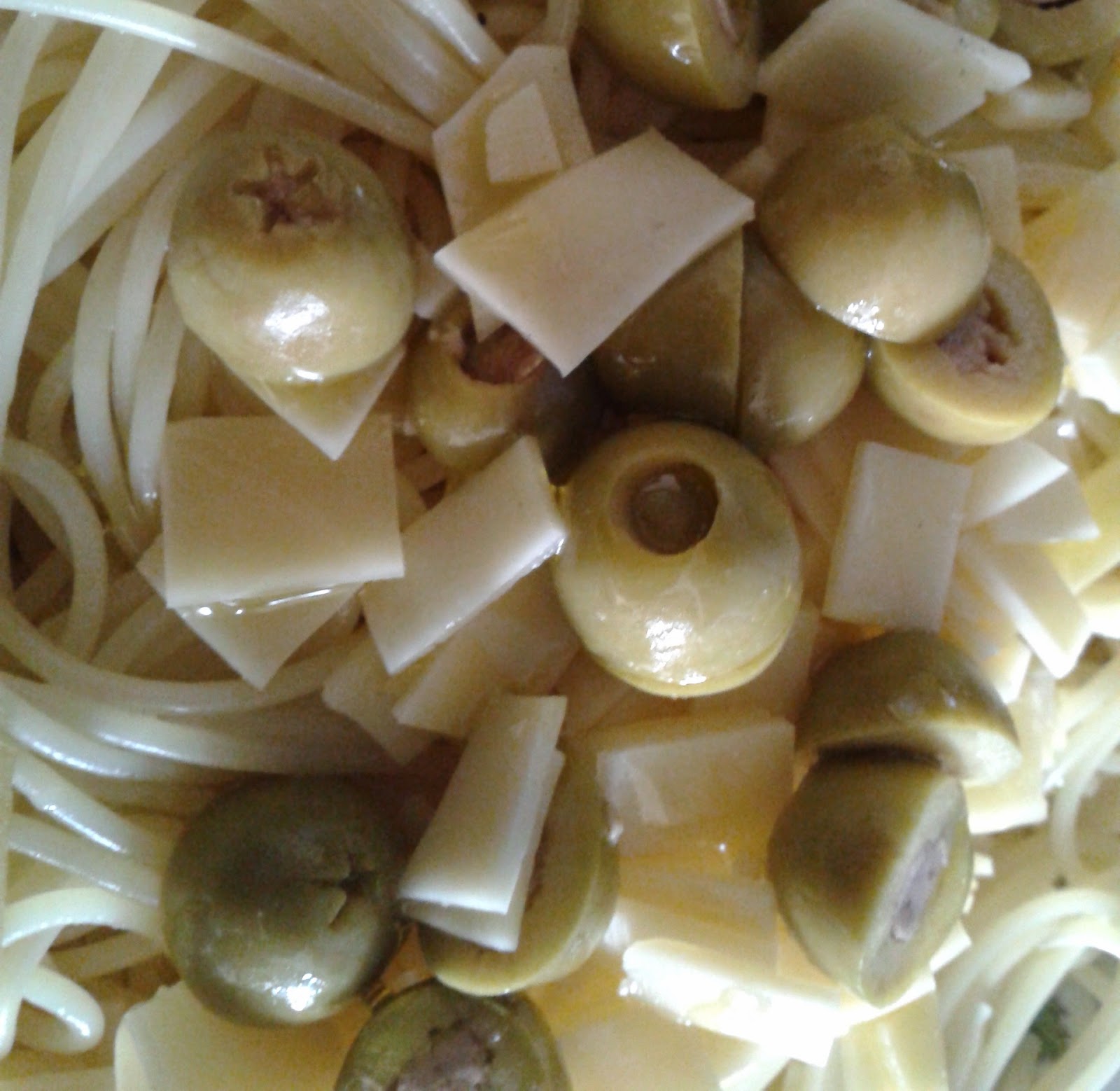 A ja.. chciałam dodać do makaronu sos pesto, ale nie było już w lodówce, a do zrobienia własnego też brakowało składników. W związku z tym do makaronu poszła oliwa z oliwek, w/wym oliwki i ser, czosnek i obiadek słomianej wdówki gotowy.. Czosnek w proszku, tak na wszelki wypadek 😉
